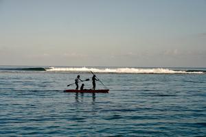 (251009) -- MALE, 9 octubre, 2025 (Xinhua) -- Imagen del 3 de octubre de 2025 de personas remando en un bote en el mar, en Hulhumale, Maldivas. (Xinhua/Wu Yue) (da) (ra) (vf)