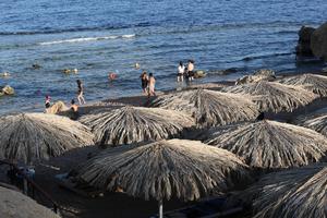 (251010) -- SHARM EL-SHEIKH, 10 octubre, 2025 (Xinhua) -- Turistas disfrutan en una playa, en Sharm el-Sheikh, Egipto, el 10 de octubre de 2025. (Xinhua/Sui Xiankai) (oa) (ra) (ce)
