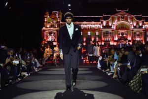 (251012) -- NUEVA DELHI, 12 octubre, 2025 (Xinhua) -- Imagen del 11 de octubre de 2025 de un modelo presentando una creación del diseñador indio Ashish N Soni durante la Semana de la Moda Lakme x FDCI, en Nueva Delhi, India. (Xinhua/Javed Dar) (rtg) (da)