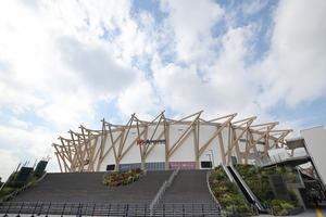 (251010) -- NAGOYA, 10 octubre, 2025 (Xinhua) -- Imagen del 10 de octubre de 2025 de la vista general de la Arena Internacional de Aichi, que será la sede de los eventos de baloncesto y judo durante los XX Juegos Asiáticos de Aichi-Nagoya 2026, en Nagoya, Japón. (Xinhua/Cao Can) (rtg) (ra) (ce)