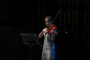 (251012) — CIUDAD DE MEXICO, 12 octubre, 2025 (Xinhua) — Imagen del 11 de octubre de 2025 de la violista Lu Jie realizando una presentación durante la gala “Bajo la misma luna: Concierto del Festival de Medio Otoño” en el CCentro Nacional de las Artes, en la Ciudad de México, capital de México. Entre melodías, colores y símbolos de luna llena, México celebró el sábado el Festival de Medio Otoño de China con un emotivo concierto de gala que reflejó la belleza y espiritualidad de una de las festividades más importantes del pueblo chino. (Xinhua/Alejandro Medina) (fc) (oa) (da)