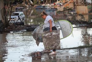 (251011) — POZA RICA, 11 octubre, 2025 (Xinhua) — Imagen del 10 de octubre de 2025 de una mujer caminando por una calle inundada por las lluvias, en la ciudad de Poza Rica, en el estado de Veracruz, México. Al menos 24 muertos han dejado las intensas lluvias que han azotado gran parte de México en los últimos días, además de miles de viviendas afectadas, deslaves y desbordamientos de ríos, de acuerdo con reportes de los gobernadores de los estados del centro y este del país en una reunión virtual con la presidenta Claudia Sheinbaum. (Xinhua/Paco De Luna) (oa) (da)