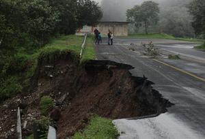 (251010) — PUEBLA, 10 octubre, 2025 (Xinhua) — Imagen cedida por el Sol de Puebla de una carretera afectada por las lluvias, en Huauchinango, estado de Puebla, México, el 10 de octubre de 2025. Al menos 24 muertos han dejado las intensas lluvias que han azotado gran parte de México en los últimos días, además de miles de viviendas afectadas, deslaves y desbordamientos de ríos, de acuerdo con reportes de los gobernadores de los estados del centro y este del país en una reunión virtual con la presidenta mexicana, Claudia Sheinbaum. (Xinhua/Daniel Casas/El Sol de Puebla) (vf) (ce) ***CREDITO OBLIGATORIO*** ***SOLO USO EDITORIAL***