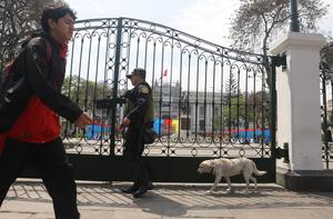(251010) -- LIMA, 10 octubre, 2025 (Xinhua) -- Un policía vigila frente al edificio del Congreso durante el primer día de Gobierno del presidente peruano, José Jerí, en Lima, Perú, el 10 de octubre de 2025. Jerí asumió la madrugada del viernes la Presidencia de la nación sudamericana, luego de que el Congreso decidiera con 122 votos destituir del cargo a Dina Boluarte. (Xinhua/Mariana Bazo) (mb) (rtg) (ra) (ce)
