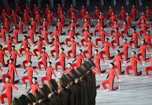 (251010) — PYONGYANG, 10 octubre, 2025 (Xinhua) — Imagen del 9 de octubre de 2025 de una escena durante un evento para celebrar el 80º aniversario de la fundación del Partido de los Trabajadores de Corea (PTC), en el estadio Día de Mayo, en Pyongyang, República Popular Democrática de Corea (RPDC). La RPDC celebró el jueves aquí un gran encuentro conmemorativo para celebrar el 80º aniversario de la fundación del PTC, informó el viernes la oficial Agencia Central de Noticias de Corea. (Xinhua/Shen Hong) (jg) (da)