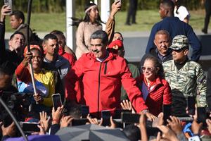 (251012) — CARACAS, 12 octubre, 2025 (Xinhua) — El presidente venezolano, Nicolás Maduro (c), participa en una marcha en el marco del Día de la Resistencia Indígena, en Caracas, Venezuela, el 12 de octubre de 2025. El pueblo venezolano se movilizó el domingo en la ciudad de Caracas, capital del país sudamericano, con motivo del Día de la Resistencia Indígena, como se conoce en Venezuela a la fecha del encuentro entre Europa y América ocurrido el 12 de octubre de 1492. (Xinhua/Marcos Salgado) (ms) (rtg) (ah)
