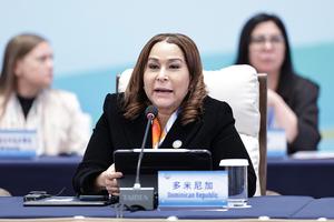 (251013) -- BEIJING, 13 octubre, 2025 (Xinhua) -- Mayra Jiménez, ministra de la Mujer de República Dominicana, asiste a la reunión plenaria de la Conferencia de Líderes Mundiales sobre la Mujer, en Beijing, capital de China, el 13 de octubre de 2025. (Xinhua/Zhang Yuwei) (rtg) (ah) (ce)