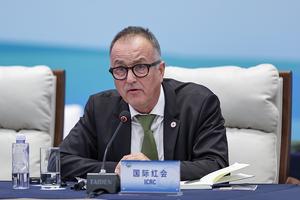 (251013) -- BEIJING, 13 octubre, 2025 (Xinhua) -- Balthasar Staehelin, jefe de la Delegación Regional del Comité Internacional de la Cruz Roja para Asia Oriental, asiste a la reunión plenaria de la Conferencia de Líderes Mundiales sobre la Mujer, en Beijing, capital de China, el 13 de octubre de 2025. (Xinhua/Zhang Yuwei) (rtg) (ah) (ce)