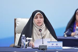 (251013) -- BEIJING, 13 octubre, 2025 (Xinhua) -- Zahra Behrouz Azar, vicepresidenta de Irán para asuntos de la Mujer y la Familia, asiste a la reunión plenaria de la Conferencia de Líderes Mundiales sobre la Mujer, en Beijing, capital de China, el 13 de octubre de 2025. (Xinhua/Zhang Yuwei) (rtg) (ah) (ce)