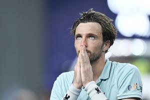 (251011) -- SHANGHAI, 11 octubre, 2025 (Xinhua) -- Arthur Rinderknech reacciona al término de la semifinal de individuales masculinos entre Arthur Rinderknech, de Francia, y Daniil Medvedev, de Rusia, en el torneo de tenis Masters de Shanghai del ATP World Tour, en Shanghai, en el este de China, el 11 de octubre de 2025. (Xinhua/Chen Haoming) (rtg) (da)