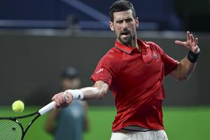 (251011) -- SHANGHAI, 11 octubre, 2025 (Xinhua) -- Novak Djokovic devuelve la pelota durante la semifinal de individuales masculinos entre Novak Djokovic, de Serbia, y Valentin Vacherot, de Mónaco, en el torneo de tenis Masters de Shanghai del ATP World Tour, en Shanghai, en el este de China, el 11 de octubre de 2025. (Xinhua/Chen Haoming) (rtg) (da)