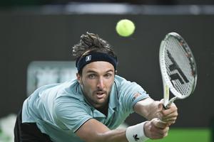 (251011) -- SHANGHAI, 11 octubre, 2025 (Xinhua) -- Arthur Rinderknech devuelve la pelota durante la semifinal de individuales masculinos entre Arthur Rinderknech, de Francia, y Daniil Medvedev, de Rusia, en el torneo de tenis Masters de Shanghai del ATP World Tour, en Shanghai, en el este de China, el 11 de octubre de 2025. (Xinhua/Chen Haoming) (rtg) (da)