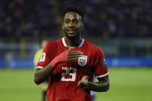 (251011) — SAN SALVADOR, 11 octubre, 2025 (Xinhua) — Imagen del 10 de octubre de 2025 del jugador Michael Murillo, de Panamá, festejando una anotación durante el partido ante El Salvador correspondiente a las Eliminatorias para el Mundial de Estados Unidos, México y Canadá 2026, celebrado en el Estadio Cuscatlán, en el departamento de San Salvador, El Salvador. (Xinhua/Alexander Peña) (ap) (oa) (da)