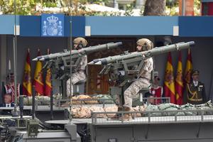 (251013) -- MADRID, 13 octubre, 2025 (Xinhua) -- Imagen del 12 de octubre de 2025 de soldados vistos durante un desfile militar conmemorativo por el Día Nacional, en Madrid, España. (Xinhua/Gustavo Valiente) (oa) (ah) (ce)