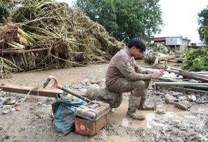 (251011) -- POZA RICA, 11 octubre, 2025 (Xinhua) -- Un joven descansa en una calle afectada por las lluvias, en la ciudad de Poza Rica, en el estado de Veracruz, México, el 11 de octubre de 2025. A 37 subió el número de muertos por las intensas lluvias registradas en los últimos días en el centro y oriente de México, informó el sábado la gubernamental Coordinación Nacional de Protección Civil. (Xinhua/Paco De Luna) (oa) (da)