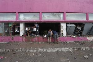(251011) -- POZA RICA, 11 octubre, 2025 (Xinhua) -- Personas revisan un inmueble afectado por las lluvias, en la ciudad de Poza Rica, en el estado de Veracruz, México, el 11 de octubre de 2025. A 37 subió el número de muertos por las intensas lluvias registradas en los últimos días en el centro y oriente de México, informó el sábado la gubernamental Coordinación Nacional de Protección Civil. (Xinhua/Francisco Cañedo) (fc) (ra)
