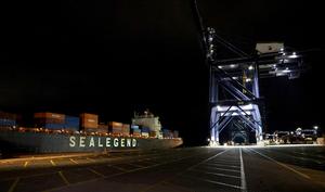 (251014) -- FELIXSTOWE, 14 octubre, 2025 (Xinhua) -- Imagen del 13 de octubre de 2025 del "Istanbul Bridge", el primer buque de la ruta ártica exprés de contenedores China-Europa, llegando al puerto de Felixstowe, en Reino Unido. Tras un viaje de 20 días, el primer buque de la ruta ártica exprés de contenedores China-Europa llegó el lunes por la noche al puerto de Felixstowe, en el este de Reino Unido. Bautizado como "Istanbul Bridge", el buque portacontenedores zarpó del puerto de Ningbo-Zhoushan, en el este de China, con un cargamento de unas 4.000 unidades TEU (acrónimo en inglés de Unidad Equivalente a Veinte Pies). (Xinhua/Li Ying) (oa) (ah) (vf)