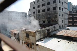 (251015) -- DHAKA, 15 octubre, 2025 (Xinhua) -- Imagen del 15 de octubre de 2025 del sitio de un incendio en una fábrica de ropa y un almacén de productos químicos, en Dhaka, Bangladesh. Al menos 16 personas murieron después de que un devastador incendio arrasara una fábrica de ropa y un almacén de productos químicos en Dhaka, capital de Bangladesh. (Xinhua/Habibur Rahman) (jg) (da) (vf)