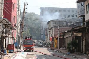 (251015) -- DHAKA, 15 octubre, 2025 (Xinhua) -- Imagen del 15 de octubre de 2025 del sitio de un incendio en una fábrica de ropa y un almacén de productos químicos, en Dhaka, Bangladesh. Al menos 16 personas murieron después de que un devastador incendio arrasara una fábrica de ropa y un almacén de productos químicos en Dhaka, capital de Bangladesh. (Xinhua/Habibur Rahman) (jg) (da) (vf)