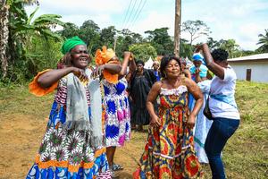 (251015) — YAUNDE, 15 octubre, 2025 (Xinhua) — Imagen del 8 de octubre de 2025 de aldeanos festejando tras la inauguración oficial del proyecto “Rural Solar” construido por una empresa china, en Songmimbias, en la Región Central de Camerún. A principios de octubre, varias aldeas enclavadas en las selvas tropicales de la Región Central de Camerún cobraron vida con música y baile, mientras los lugareños celebraban la inauguración oficial del proyecto “Rural Solar”, construido por una empresa china. El proyecto solar tiene como objetivo proporcionar energía sin conexión a la red eléctrica a 1.000 comunidades rurales en todo Camerún. (Xinhua/Kepseu) (jg) (da) (vf)