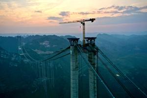 (251015) — GUIYANG, 15 octubre, 2025 (Xinhua) — Imagen tomada en octubre de 2024 por Xie Chaoqing, propietario de una casa de huéspedes local, del Puente sobre el Gran Cañón de Huajiang en construcción, en la provincia de Guizhou, en el suroeste de China. Cruzando el Gran Cañón de Huajiang, conocido como “la grieta de la Tierra”, la estructura de 2.890 metros de longitud es la más reciente incorporación a la red de infraestructuras en rápida expansión de la segunda economía más grande del mundo. (Xinhua/Xie Chaoqing) (jg) (da) (ce)