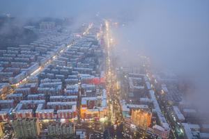 (251015) -- HARBIN, 15 octubre, 2025 (Xinhua) -- Vista aérea tomada con un dron el 15 de octubre de 2025 de una vista de la nevada ciudad de Shuangyashan, en la provincia de Heilongjiang, en el noreste de China. Una nevada afectó parte de Heilongjiang el miércoles. (Xinhua/Han Yang) (jg) (da) (ce)