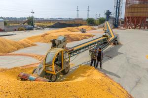 (251015) — BAYANNUR, 15 octubre, 2025 (Xinhua) — Un trabajador opera una máquina para transportar el maíz cosechado a la secadora, en la bandera frontal de Urad, en Bayannur, en la región autónoma de Mongolia Interior, en el norte de China, el 15 de octubre de 2025. La bandera frontal de Urad en Bayannur ha entrado recientemente en la temporada de cosecha de otoño, con la agricultura mecanizada aplicada para mejorar la eficiencia. (Xinhua/Ma Jinrui) (jg) (da) (vf)