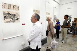(251015) — LA HABANA, 15 octubre, 2025 (Xinhua) — Imagen del 14 de octubre de 2025 de visitantes observando pinturas de la exposición “Fusión y Armonía: Pinturas de la Ruta de la Seda de Famosos Artistas Chinos en Gira por el Extranjero” en la Biblioteca Nacional José Martí, en La Habana, capital de Cuba. La exposición “Fusión y Armonía: Pinturas de la Ruta de la Seda de Famosos Artistas Chinos en Gira por el Extranjero” se inauguró el martes en la Biblioteca Nacional José Martí, como parte de las celebraciones por el 65º aniversario del establecimiento de relaciones diplomáticas entre China y Cuba. (Xinhua/Joaquín Hernández) (jh) (ah) (ra) (vf)