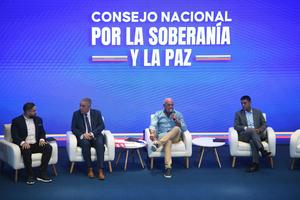 (251014) -- CARACAS, 14 octubre, 2025 (Xinhua) -- El presidente de la Asamblea Nacional venezolana, Jorge Rodríguez (2-d), habla durante un del Consejo Nacional por la Soberanía y la Paz, en Caracas, Venezuela, el 14 de octubre de 2025. (Xinhua/Marcos Salgado) (ms) (oa) (ah) (vf)