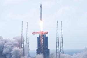 (251016) — WENCHANG, 16 octubre, 2025 (Xinhua) — Un cohete portador Gran Marcha-8A transportando el grupo número 12 de satélites de internet de órbita baja despega desde el sitio de lanzamiento de naves espaciales comerciales de Hainan, en la provincia de Hainan, en el sur de China, el 16 de octubre de 2025. El cohete despegó a las 09:33 horas del jueves. La nave colocó con éxito en la órbita predeterminada las cargas útiles. (Xinhua/Zhang Liyun) (da) (ra) (vf)