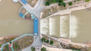 (251016) — BAYANNUR, 16 octubre, 2025 (Xinhua) — Vista aérea tomada con un dron el 16 de octubre de 2025 de un centro de desviación de agua, en el distrito de Linhe de Bayannur, en la región autónoma de Mongolia Interior, en el norte de China. La Zona de Riego de Hetao, ubicada en Bayannur, ha desviado agua del río Amarillo para riego desde la dinastía Qin (221 a. C.-207 a. C.). Se está implementando un riego estacional en la zona para preservar la humedad del suelo para la agricultura de primavera del próximo año. (Xinhua/Ma Jinrui) (da) (ra) (vf)