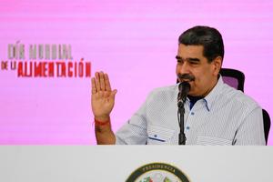(251016) -- CARACAS, 16 octubre, 2025 (Xinhua) -- Imagen proveída por la Presidencia de Venezuela del presidente venezolano, Nicolás Maduro, hablando durante el cierre del Congreso Nacional de Cocineras y Cocineros de la Patria en el marco del Día Mundial de la Alimentación, en Caracas, Venezuela, el 16 de octubre de 2025. (Xinhua/Presidencia de Venezuela) (ms) (da) (ra) (vf)