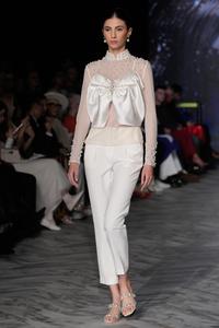 (251017) — VANCOUVER, 17 octubre, 2025 (Xinhua) — Imagen del 16 de octubre de 2025 de una modelo desfilado en la pasarela de la colección Primavera/Verano 2026 de JUMPER ZHANG durante la Semana de la Moda de Vancouver, en Vancouver, Columbia Británica, Canadá. (Xinhua/Liang Sen) (oa) (ra) (ce)