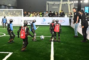 (251017) — SHIJIAZHUANG, 17 octubre, 2025 (Xinhua) — Robots son vistos durante un partido de fútbol en el Centro Internacional de Convenciones y Exposiciones, en Shijiazhuang, en la provincia de Hebei, en el norte de China, el 17 de octubre de 2025. La Competencia de Robots de China 2025 y el RoboCup China Open se celebran aquí desde el viernes hasta el domingo. (Xinhua/Chen Qibao) (oa) (ra) (vf)