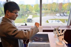 (251017) — SHENYANG, 17 octubre, 2025 (Xinhua) — Un trabajador realiza una demostración de una mano biónica en la Conferencia de Robótica de Shenyang 2025, en Shenyang, en la provincia de Liaoning, en el noreste de China, el 17 de octubre de 2025. El evento de dos días comenzó aquí el viernes. (Xinhua/Wu Qinghao) (jg) (da) (vf)