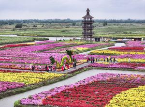 (251018) -- BEIJING, 18 octubre, 2025 (Xinhua) -- Vista aérea tomada con un dron de turistas visitando un área escénica, en Xinghua, en la provincia de Jiangsu, en el este de China, el 18 de octubre de 2025. (Xinhua/Gu Jihong) (jg) (da)