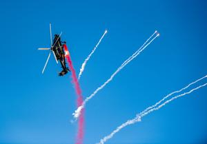 (251018) -- TIANJIN, 18 octubre, 2025 (Xinhua) -- Un helicóptero Z-10 realiza una presentación durante la séptima Exposición de Helicópteros de China, en la municipalidad de Tianjin, en el norte de China, el 18 de octubre de 2025. La exposición abrió sus puertas al público general el sábado. (Xinhua/Zhao Zishuo) (oa) (da)