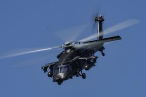 (251018) -- TIANJIN, 18 octubre, 2025 (Xinhua) -- Un helicóptero del equipo de acrobacias aéreas Fenglei del Ejército Popular de Liberación de China realiza una presentación durante la séptima Exposición de Helicópteros de China, en la municipalidad de Tianjin, en el norte de China, el 18 de octubre de 2025. La exposición abrió sus puertas al público general el sábado. (Xinhua/Zhang Yongjin) (jg) (da)