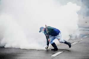 (251017) -- BOGOTA, 17 octubre, 2025 (Xinhua) -- Un hombre participa en una protesta frente a la Embajada de Estados Unidos, en Bogotá, capital de Colombia, el 17 de octubre de 2025. (Xinhua/Andrés Moreno) (am) (oa) (ra) (ce)
