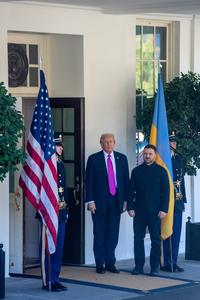 (251017) -- WASHINGTON, 17 octubre, 2025 (Xinhua) -- El presidente de Estados Unidos, Donald Trump (2-i), da la bienvenida al presidente ucraniano, Volodymyr Zelensky, en la Casa Blanca, en Washington, D.C., Estados Unidos, el 17 de octubre de 2025. (Xinhua/Hu Yousong) (jg) (da) (vf)