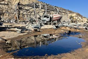 (251017) -- ANSAR, 17 octubre, 2025 (Xinhua) -- Imagen del 17 de octubre de 2025 de un complejo de fabricación de cemento destruido tras ataques aéreos israelíes, en Ansar, Líbano. Una persona murió y otras siete resultaron heridas el jueves en una serie de ataques aéreos israelíes contra posiciones de Hizbulá en el sur de Líbano, dijo el Centro de Operaciones de Emergencia del Ministerio de Salud. (Xinhua/Ali Hashisho) (oa) (ra) (ce)