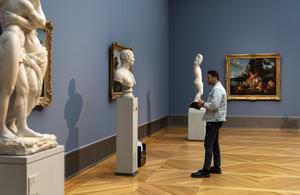 (251019) — BERLIN, 19 octubre, 2025 (Xinhua) — Imagen del 18 de octubre de 2025 de un visitante dibujando un boceto para una exposición en el Museo Bode, en Berlín, Alemania. Una amplia variedad de actividades para familias se llevaron a cabo para celebrar el 121° aniversario de la inauguración del Museo Bode el sábado. (Xinhua/Zhang Haofu) (oa) (da)