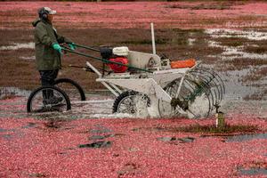 (251018) -- RICHMOND, 18 octubre, 2025 (Xinhua) -- Imagen del 17 de octubre de 2025 de un trabajador cosechando arándanos con una máquina especializada en una granja de arándanos, en Richmond, Columbia Británica, Canadá. Richmond es una de las principales áreas productoras de arándanos de Canadá, donde la cosecha suele extenderse desde finales de septiembre hasta principios de noviembre. (Xinhua/Liang Sen) (oa) (da)