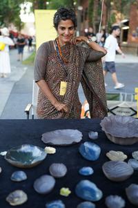 (251018) -- JINGDEZHEN, 18 octubre, 2025 (Xinhua) -- Imagen del 17 de octubre de 2025 de una artista de India mostrando sus obras en un carnaval de cerámica llevado a cabo como un evento paralelo de la Exposición Internacional de Cerámica de Jingdezhen de China 2025, en Jingdezhen, en la provincia de Jiangxi, en el este de China. La Exposición Internacional de Cerámica de Jingdezhen de China 2025 fue inaugurada el 18 de octubre en Jingdezhen, una ciudad del este de China conocida como la "capital de la porcelana", atrayendo a más de 1.000 compradores nacionales y extranjeros. (Xinhua/Zhou Mi) (jg) (da)