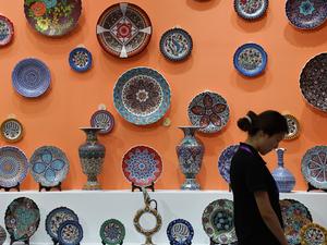 (251018) –JINGDEZHEN, 18 octubre, 2025 (Xinhua) — Una visitante recorre el área de exposición de Turquía durante la Exposición Internacional de Cerámica de Jingdezhen de China 2025, en Jingdezhen, en la provincia de Jiangxi, en el este de China, el 18 de octubre de 2025. La Exposición Internacional de Cerámica de Jingdezhen de China 2025 fue inaugurada el 18 de octubre en Jingdezhen, una ciudad del este de China conocida como la “capital de la porcelana”, atrayendo a más de 1.000 compradores nacionales y extranjeros. (Xinhua/Zhou Mi) (oa) (da)