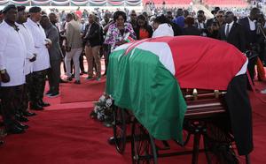 (251019) -- NAIROBI, 19 octubre, 2025 (Xinhua) -- Imagen del 17 de octubre de 2025 del féretro del fallecido primer ministro, Raila Odinga, visto durante su funeral de Estado en el Estadio Nyayo, en Nairobi, Kenya. El exprimer ministro de Kenia, Raila Odinga, murió el miércoles debido a un ataque al corazón en un hospital en India, confirmó la Presidencia. (Xinhua/Fred Mutune) (da) (ah)