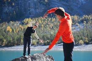 (251019) -- KANDERSTEG, 19 octubre, 2025 (Xinhua) -- Imagen del 18 de octubre de 2025 de personas posando para fotografías junto al lago Oeschinen, cerca de Kandersteg, en el Oberland bernés, Suiza. El lago Oeschinen, situado a una altitud de 1.578 metros cerca de Kandersteg, en el Oberland bernés suizo, forma parte del sitio del Patrimonio Mundial de la Unesco "Alpes suizos Jungfrau-Aletsch". (Xinhua/Lian Yi) (oa) (da)