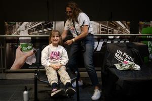 (251020) — BUENOS AIRES, 20 octubre, 2025 (Xinhua) — Antonia Leroux (i), de 5 años, reacciona mientras una peluquera integrante de la Fundación Tijeras Solidarias le corta el cabello para ser donado durante la segunda edición de la campaña #UnPelitoMásFácil, en el marco de la conmemoración del Día Internacional de la Lucha Contra el Cáncer de Mama, en una estación del metro de Buenos Aires, en la ciudad de Buenos Aires, capital de Argentina, el 20 de octubre de 2025. El Metro de Buenos Aires organizó el lunes una jornada de donación de cabello para pacientes en tratamiento oncológico, una acción solidaria en el marco del Día Internacional de la Lucha Contra el Cáncer de Mama que se celebra cada 19 de octubre. (Xinhua/Martín Zabala) (mz) (rtg) (ah) (ce)