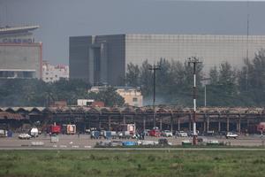 (251020) — DHAKA, 20 octubre, 2025 (Xinhua) — Imagen del 19 de octubre de 2025 del área de carga del Aeropuerto Internacional Hazrat Shahjalal después de un incendio, en Dhaka, Bangladesh. El devastador incendio en la zona de carga del Aeropuerto Internacional Hazrat Shahjalal provocó el desvío o la cancelación de unos 21 vuelos, según Sheikh Bashir Uddin, asesor del Ministerio de Aviación Civil y Turismo de Bangladesh. (Xinhua/Habibur Rahman) (oa) (ah) (ce)