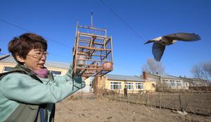 (251021) — HARBIN, 21 octubre, 2025 (Xinhua) — Imagen del 2 de noviembre de 2019 de la voluntaria, Guan Shaoxian, liberando un ave capturada ilegalmente, en el distrito de Hulan, en la ciudad de Harbin, en la provincia de Heilongjiang, en el noreste de China. Compuesto por más de 60 miembros, un equipo de voluntarios para la conservación de la vida silvestre de Harbin se ha dedicado durante mucho tiempo a la protección ecológica en la cuenca del río Songhua. (Xinhua/Zhang Shu) (oa) (ah) (ce)